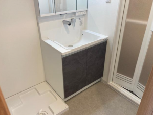 全クロス張替洋室へ変更/クッションフロア張替/全建具交換/靴箱新調/洗面台交換/給湯器交換/