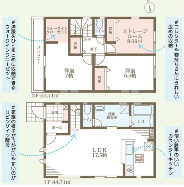 - システムキッチン、カウンターキッチン、シャンプードレッサー、洗浄便座、浴室乾燥機、ウォークインクローゼット、モニタ付インターホン、床下収納、トイレ2箇所、角部屋