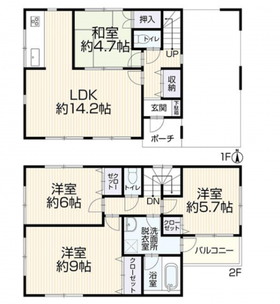- システムキッチン、洗浄便座、浴室乾燥機、追い焚き、モニタ付インターホン、床下収納、トイレ2箇所、太陽光発電システム搭載