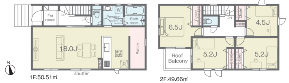 - システムキッチン、カウンターキッチン、洗浄便座、浴室乾燥機、複層ガラス、ルーフバルコニー、モニタ付インターホン、駐車場2台分、床下収納、トイレ2箇所