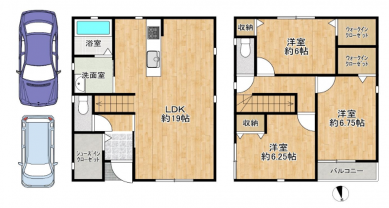 - カウンターキッチン、ウォークインクローゼット、駐車場2台分、トイレ2箇所