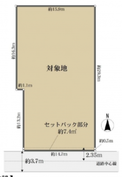- 南側 公道3.7m 間口約14.7m