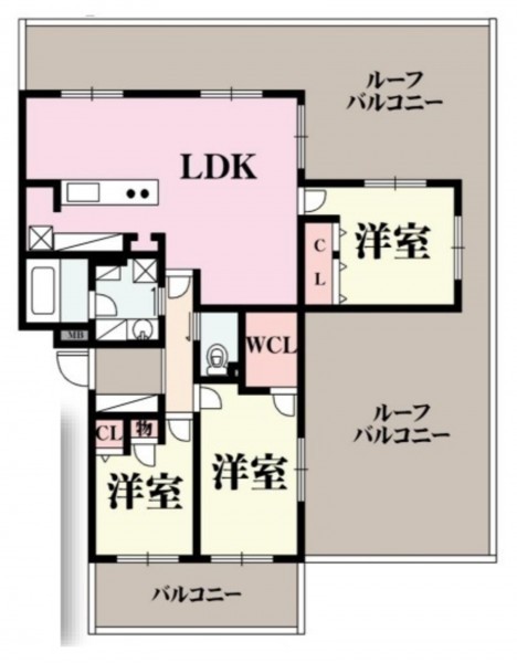 3LDK+ルーフバルコニー付きのお部屋