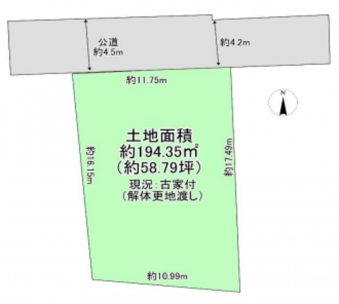 - 北側 公道4.2m 間口約11.7m