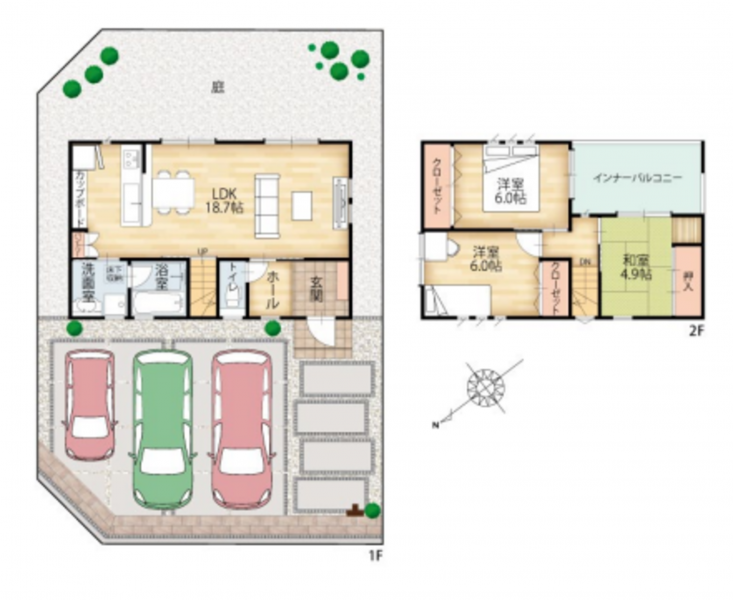 - 駐車場2台分、駐車場3台分
