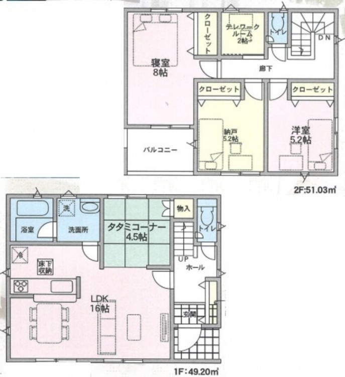 - システムキッチン、カウンターキッチン、シャンプードレッサー、洗浄便座、浴室乾燥機、複層ガラス、ルーフバルコニー、モニタ付インターホン、床下収納、トイレ2箇所